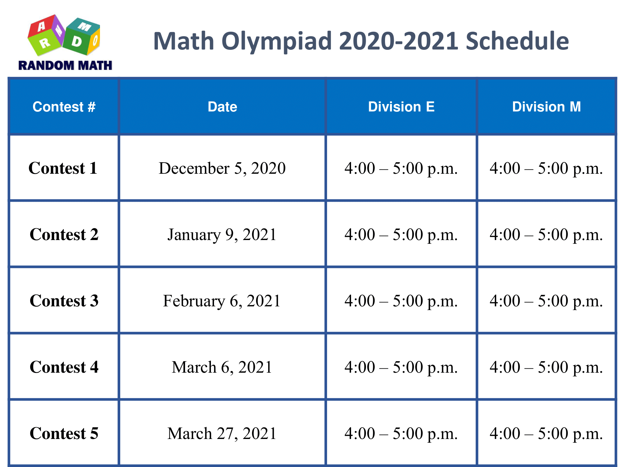 OFFICIAL Contest Results Grades 4 5 and Algebra 2020-2021 Posted. Math League Website Published.